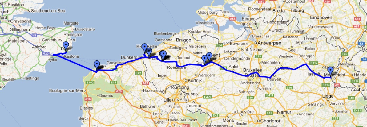 tot aan Dover. Moe maar voldaan komen we aan.