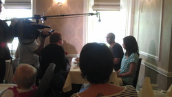 Bij het ontbijt blijkt al snel dat wij ook deel uitmaken van het geheel: we worden geinterviewed net als iedereen in het kasteel.