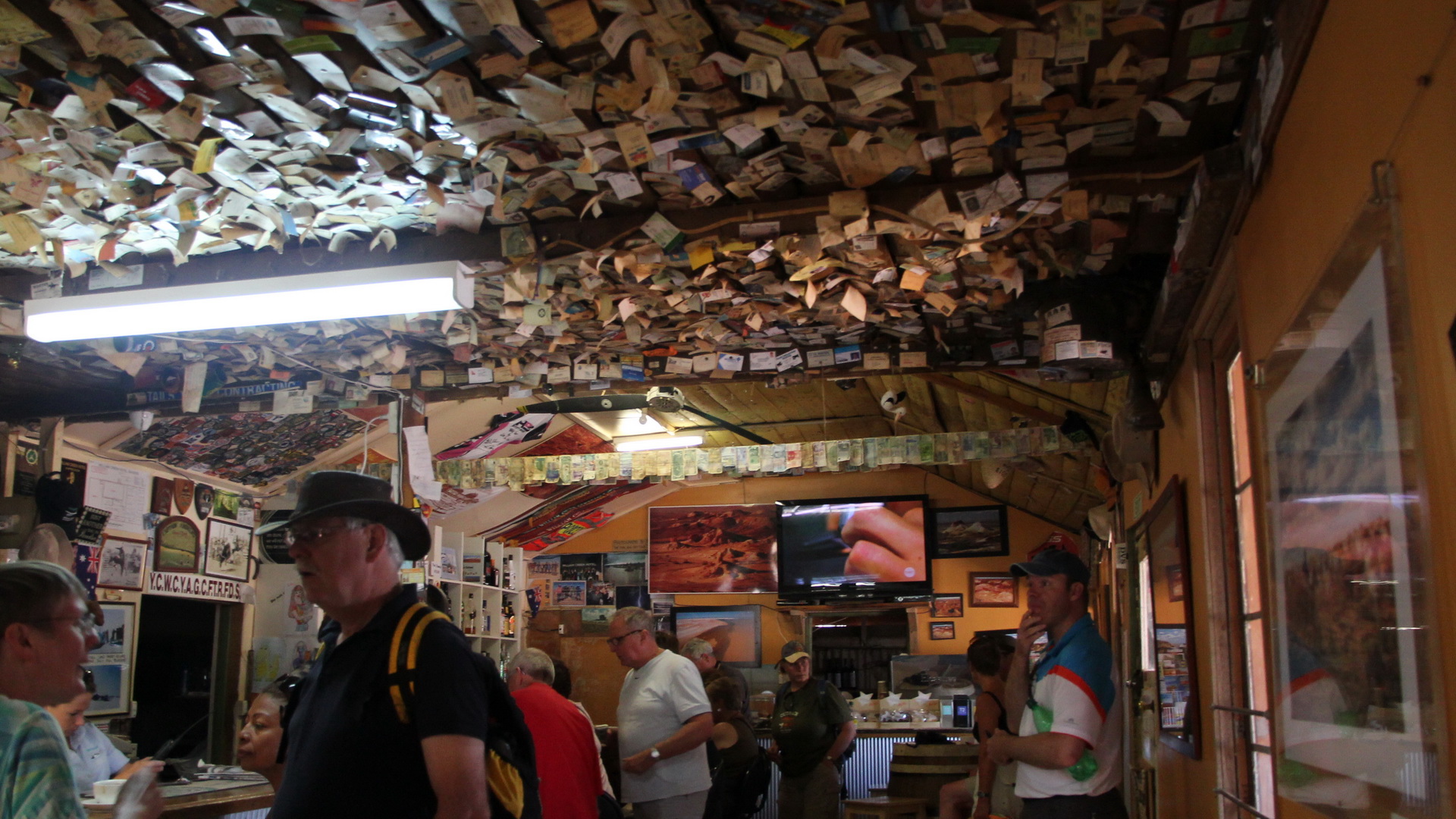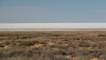 tempo een stuk lager, maar vooral ook hobbeliger. Tijdens het regenseizoen worden vaak delen weggespoeld, of ontstaan er tijdens het gebruik spoorvorming waardoor men de weg weer moet "glad" maken. We moeten een tijdje achter een machine rijden die alles opruwt, om zo de spoorvorming eruit te kunnen halen. Iets verder zien we het beroemde Dingo-fence. Een ongeveer 1 meter hoge afrastering met een lengte van 9600 kilometer dwars door het land, tegen de verspreiding van de dingo, de Australische wilde hond. De volgende tussenstop is bij William Creek. Een gehucht met minder dan 50 inwoners in de middle of nothing. Eigenlijk is het niet meer dan een bar, maar die is zo bekend dat de diverse boeren met een vliegtuigje komen om er gezellig wat tijd door te brengen. De volgende stop is bij een natuurlijke bron. Men heeft er een soort Spa van gemaakt waar je voor 2$ je lekker kunt gaan instaan en relaxen. Iets verder komen we nog 2 bronnen tegen en deze zijn beschermd. De laatste tussenstop maken we bij het South Lake Eyre Basin. Een gigantisch groot meer, maar momenteel staat het droog en is enkel een grote zoutvlakte zichtbaar. Op de landkaart blijkt het North Lake Eyre minstens 4x zo groot te zijn en dat staat ook droog. Nauwelijks voor te stellen. Tot slot komen we aan in Marree. Een verlaten stad uit de middeleeuwen is onze eerste mening en beschrijving, maar buiten tenten opzetten en avondeten komen we vandaag niet meer. |