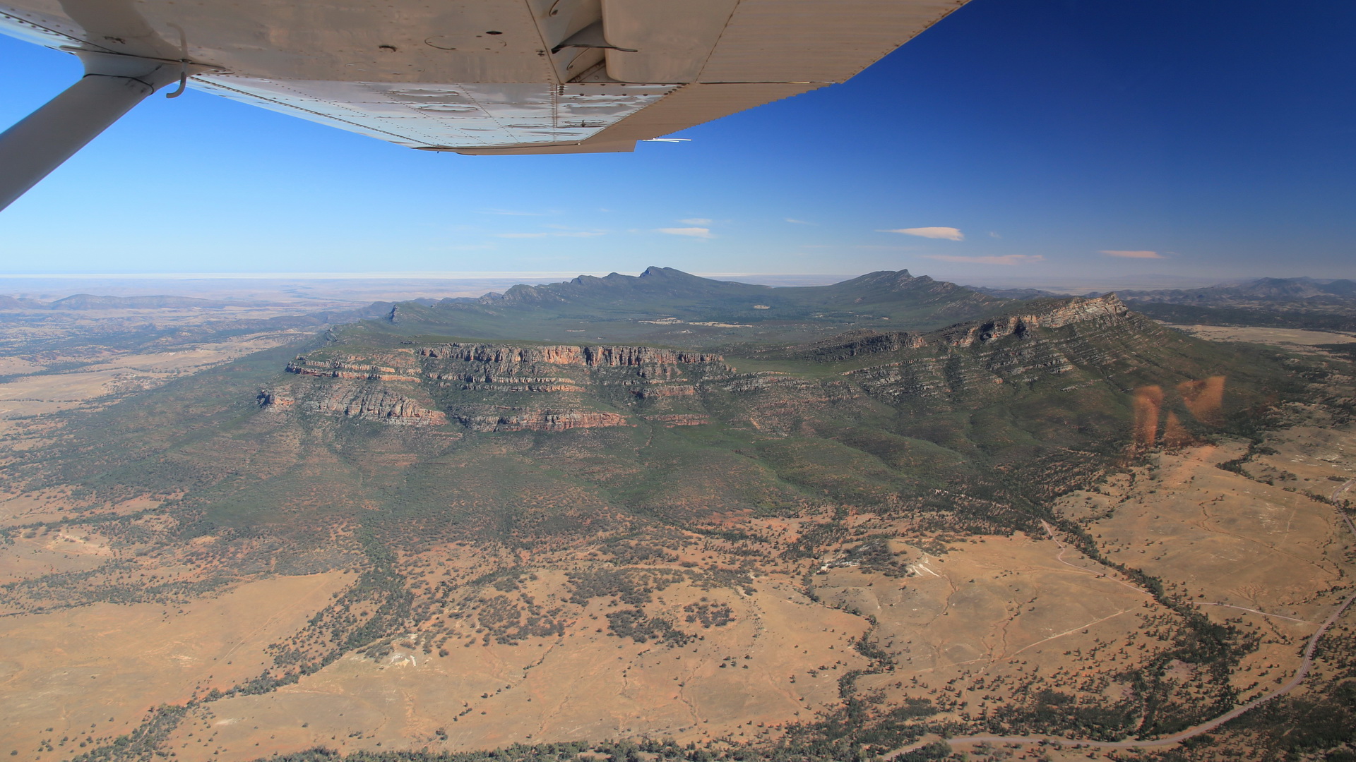 dit onze laatste camping dag was een verademing. De standaard planning is om een wandeling te maken naar Wilpena Pound. Een berg die hoger geweest zou zijn als de Himalaya, maar waar de top die naar boven was gekomen bestond uit losse zand of zachte materialen. Door de loop der tijd is al het zachte weggespoeld en daardoor is er nu enkel nog de voet van vaste rotsen achter gebleven. Deze zijn nu als een grote schaal zichtbaar. We horen dat er ipv de wandeling ook een optie is om dit via een vliegtuigje (Chessna) te gaan bekijken. We ziet dat wel zitten en besluiten dit te gaan doen, dus vanmorgen gelijk om 7u30 klaarstaan bij de receptie om dit te gaan boeken. We kunnen met de laatste vlucht die er gaat voordat de groep weer verder rijd nog meevliegen. Resultaat zijn een geweldige ervaring en mooie plaatjes van dit natuur verschijnsel. De rest van de dag rijden we vanuit Flinders Range zuidwaarts naar Adelaide via wijngaarden en kleine dorpjes. |