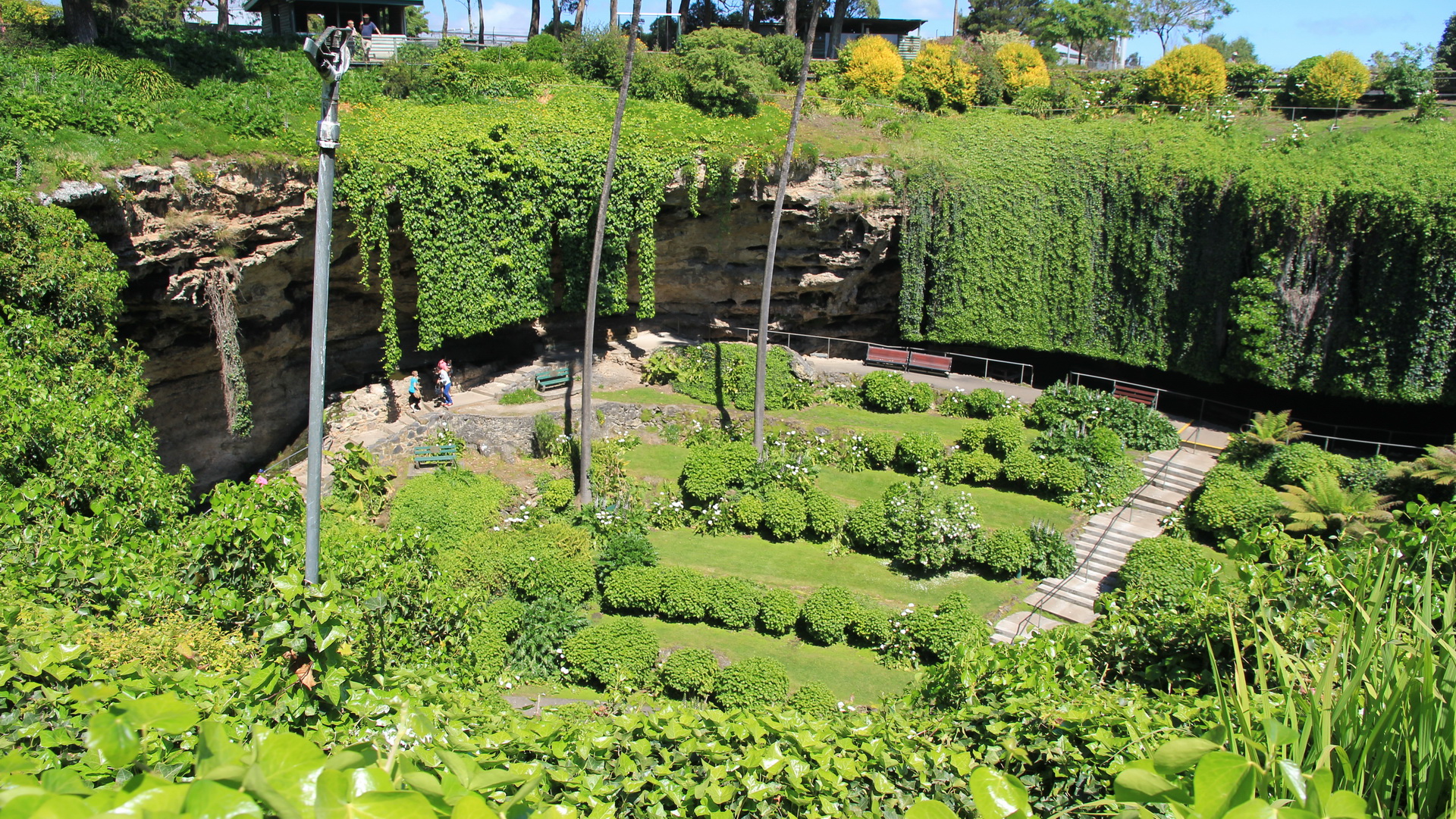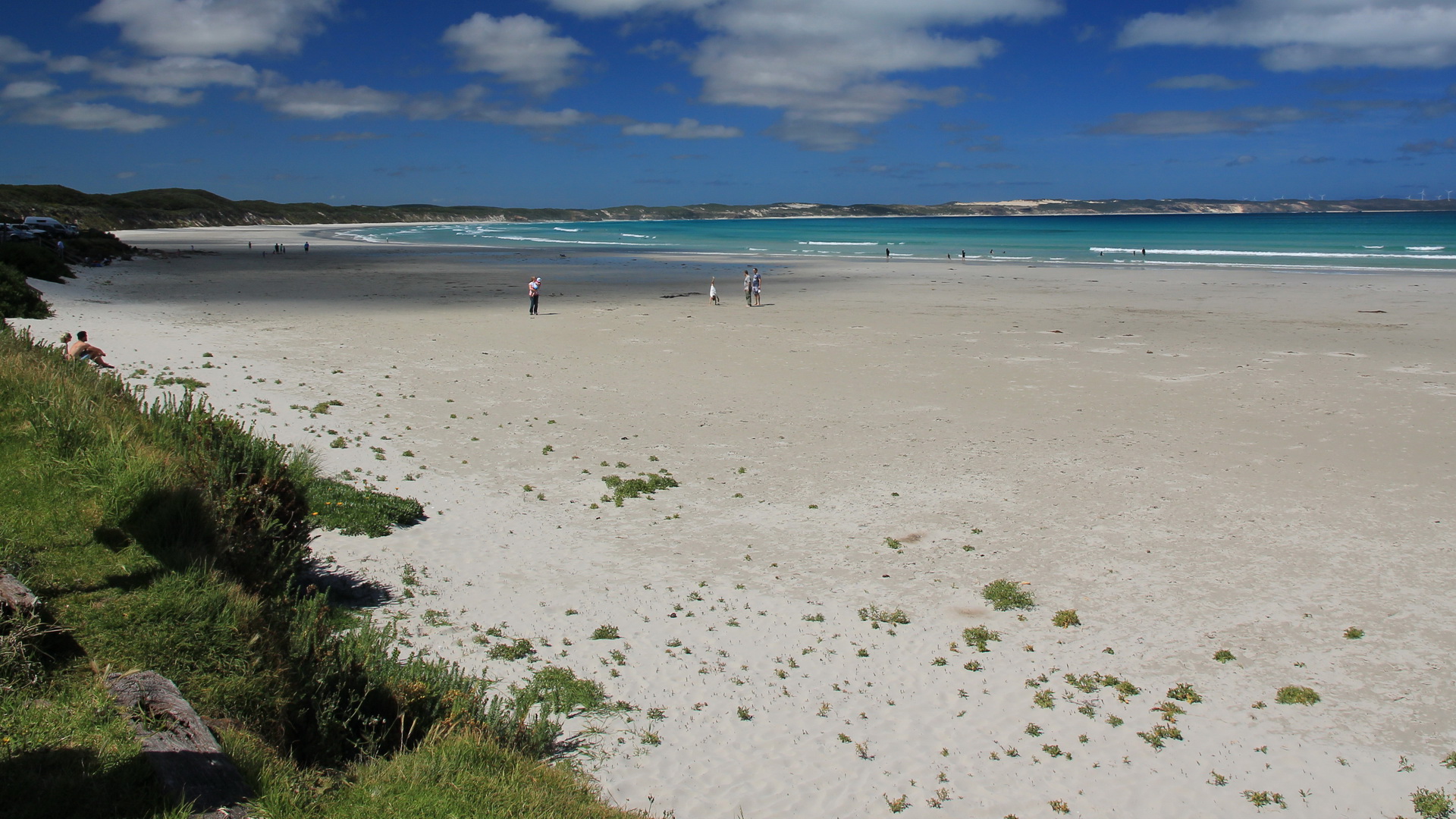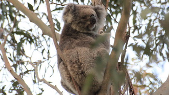ontbijt op bed bezorgen. Leuk. De eerste tussenstop die we maken is bij een "cave" een grot of gat die door het weg sijpelen van water door een mergellaag wordt gevormd. Ze noemen het hier een sinkhole, die wat wij bekeken hebben was zo groot dat zelfs een vrachtwagen er in de lange of verticale manier er zou in passen. De volgende stop is bij een vulkaan krater. Echter is het grondwater hoger dan het gat, waardoor er een "blue lake" ontstaan is. Super helder blauw water. Volgens het bordje 36.000 miljoen liter water. Een uurtje later moeten we plots stoppen voor een politieauto die dwars op de weg staat. Er blijken diverse motorrijders van de weg te zijn geraakt. Even verderop staat de helikopter reeds klaar om de ergste gewonden naar het ziekenhuis te kunnen brengen. We horen dat de motorrijders drugs genomen hadden en dat ze bekend waren bij de politie... We rijden verder langs de kust en komen op sommige plaatsen langs prachtige stranden en blauwe zee. Grote verschil met andere plaatsen is dat het brede witte zandstrand maar door een handje vol mensen gebruikt wordt !!! Maar ook worden weer nieuw "wildlife" gespot. Als eerste een zeeleeuw in de haven, maar tegen de avond kunnen we bij Townhill nog 2 Koala zien. Ze zitten hoog in de boom te genieten van de groene blaadjes om hun heen. Hierdoor is het moeilijk en lang wachten totdat we het gezicht een beetje goed kunnen zien. Zeker als een van de 2 ook nog spontaan begint te piessen. !!! Hilarisch. |