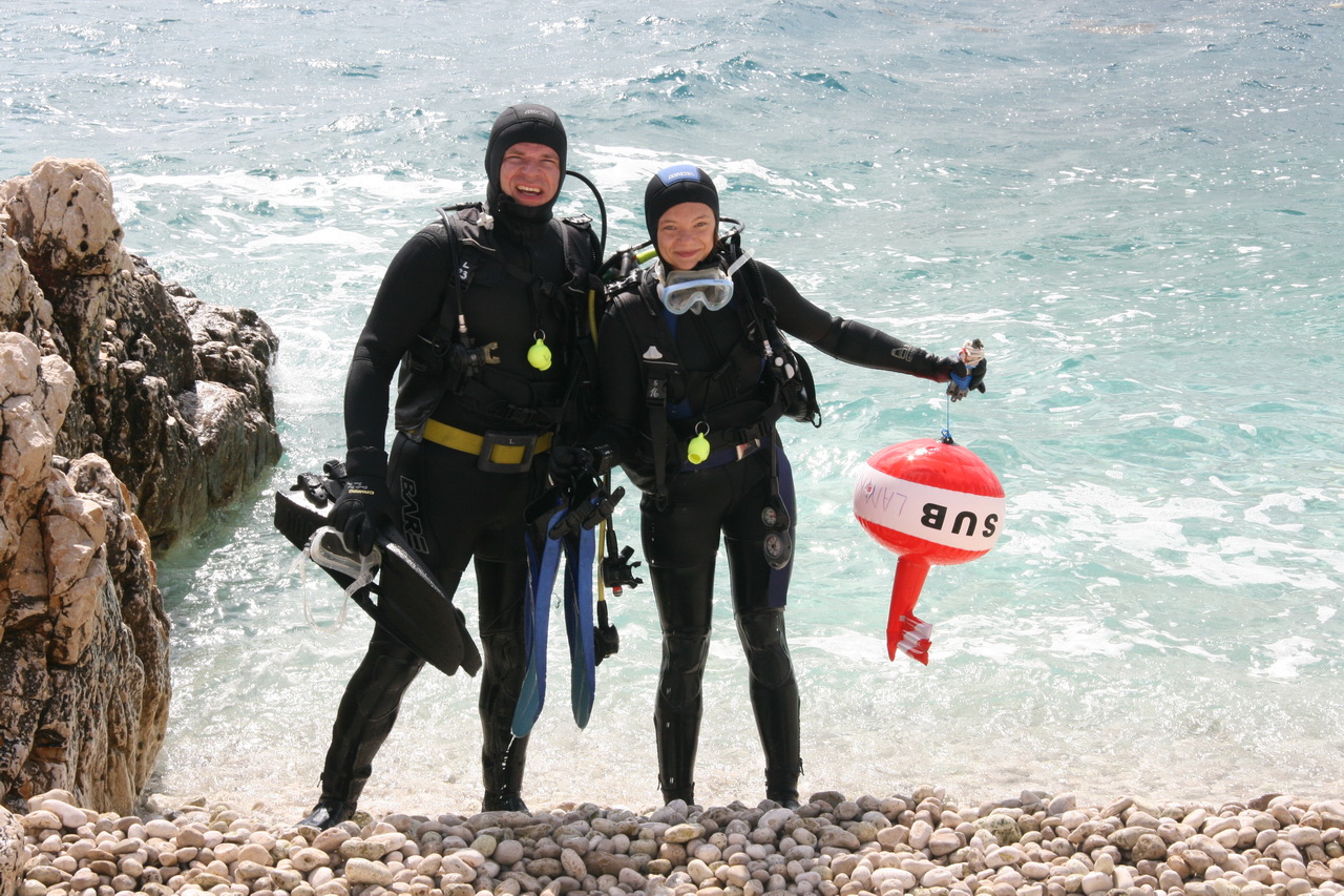 's morgens een Duik van Mike in de Adriatische Zee. Er