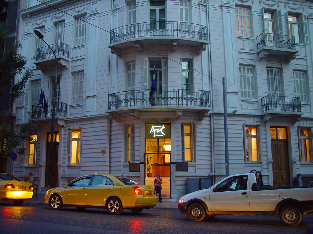 Zaventem. Alles zonder problemen. Tijdens de security controle werd Mike eruit gepikt, hij had een schaartje in zijn laptop tas zitten. Dit mag natuurlijk niet in hand bagage maar in toiletzak in groot koffer. Nadat ook dit opgelost is kunnen we vertrekken met Olympic Airlines naar Athene. De vlucht verloopt zonder enige stubbelingen en landen dan ook, wel 25 minuten later, op Griekse grond. Na een taxi-rit van 30 minuten worden we aan hotel Evripides afgezet. Binnen horen we dat het hotel overboekt is maar dat de firma waar wij geboekt hadden een ander hotel gereserveerd had. Het zou een hogere klasse zijn, maar voor ons zonder meerprijs. Loopafstand zou 15 minuten zijn!!. Nadeel is dat je dat niet wil met alle koffers nog bij je, dus weer taxi bestellen. Na een taxi rit van ook 10 minuten komen we bij Hotel Art aan. Op het eerste oog inderdaad mooier. De mening wordt bevestigd na het zien van de kamer. De spanning van het begin wordt dus beloond, gelukkig :) Voldaan kunnen we gaan slapen |
