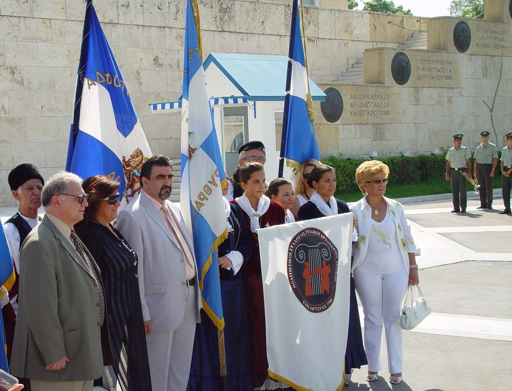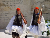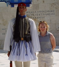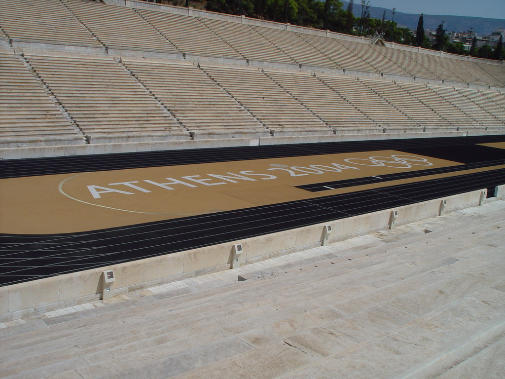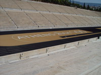 wacht te gaan bekijken. Dit wordt elk uur voor het Parlement uitgevoerd. Blijkt vandaag toevallig ook een nationale herdenkingsdag te zijn van de oorlog tegen Turkije uit 1922. Een heleboel "bekende" mensen leggen kransen bij het parlement. Daarna was de standaard wisseling van de wacht, met ertussen de mogelijkheid om op de foto te staan met een van de wachters. Tijdens de middag hebben we een wandeling in de National Garden gemaakt om zo de zon een beetje te mijden. Als laatste hebben we het oude Olympische Stadium bekeken, of hoe de grieken het noemen : Panathinaikon Stadium. |