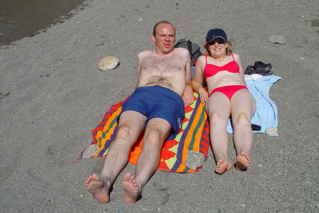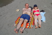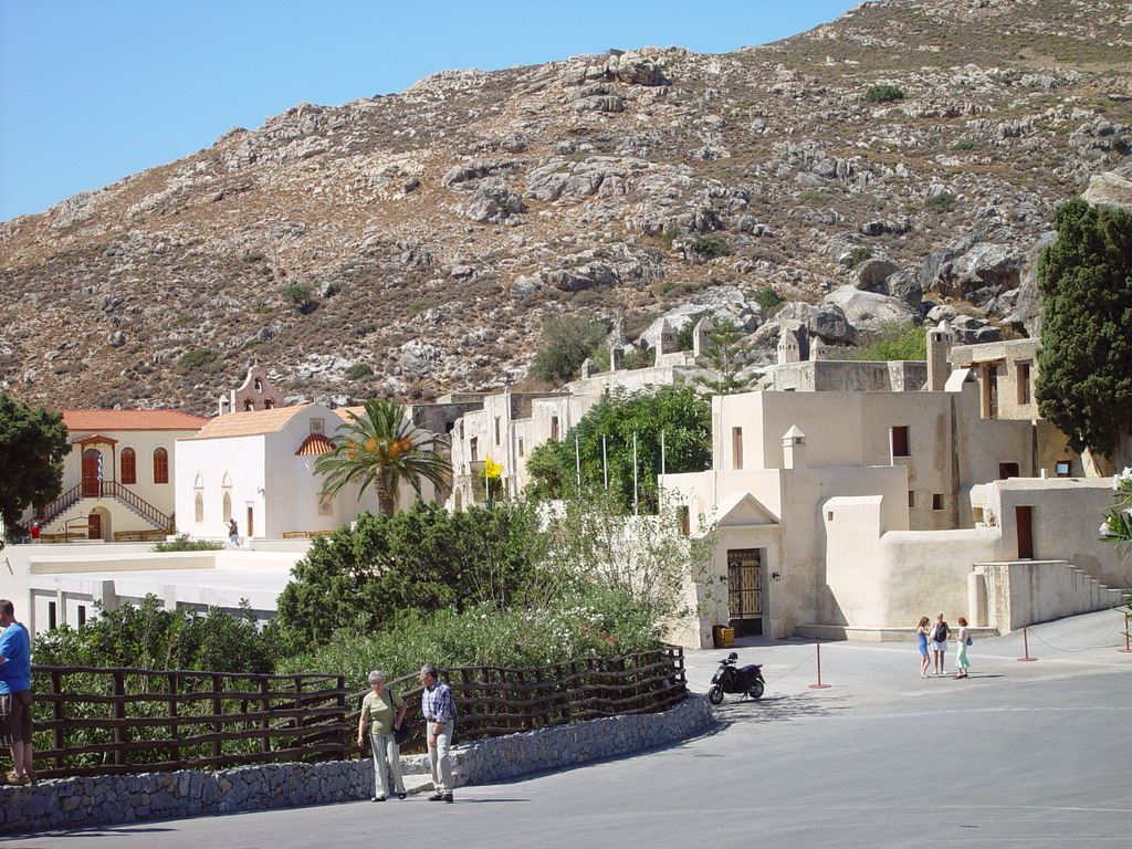 Enkel Mike heeft een paar blaren onder zijn voeten. Het was een hele klus om het begin van de weg naar Spili (en dus Preveli) te vinden vanuit Rethymon. Wegwijs borden zijn schaars en volgens ons erg duur. Je ziet ze nauwelijks en indien enkel in griekse taal. Enfin, na wat zoeken ook die gevonden en uiteindelijk bij het klooster aangekomen. Bleek dit tijdens de zomerperiode een middagpauze te nemen (buiten seizoen niet). Vandaar dat we toen eerst de beach genomen hebben. Na een stukje rijden komen we dan aan bij de parking van de beach.Wat bleek nu eerst een rots afdalen van zo'n 200 -300 meter steil naar beneden.Oh ja we zijn het nu toch al gewoon :) Niet voorzien maar goed we willen toch graag naar beneden.En dat was de moeite echt wel waard. Eerste zon-sessie voor ons. Hetgeen aan onze melkkleur goed te zien is. :) Dat konden we niet zeggen van het klooster.Een triestig boel waar nu echt niks te bekijken viel.Voor ons de eerst bezienswaardigheid die tegen valt.:( |