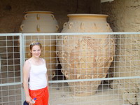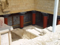 morgen zeker dat we dit alles voor 11u geregeld hebben. Daarna richting Knossos vertrokken. Het grootste monument blijkt een oud paleis te zijn. De combinatie van restanten, delen van heropgebouwde stukken en duidelijke uitleg tabletten maakten ook dit een absoluut bezienswaardig monument. Het paleis is gebouwd om luxe voor de bewoners en niet op stevigheid of verdediging. Je kunt dit merken aan complete systeem voor: - Afwatering - Schoon water aanvoer + drukregulatie - Douche en doorspoel Wc's Nadien hebben we daar iets gegeten en raar maar waar we kregen een ware stortbui over ons heen. Diverse mensen die op het buitenterras zaten zijn moeten lopen naar het overdekte. In Rethymon zelf (waar ons hotel is) was geen druppel gevallen. |