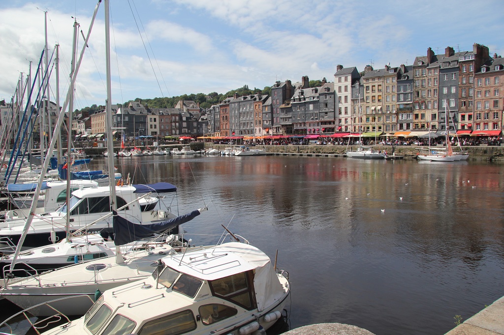 van hun functie. Le Havre zelf zijn we eigenlijk doorgereden zonder dat we iets spectaculairs gezien hadden. De brug over de Seine is dan natuurlijk een heel ander verhaal. Eigenlijk zijn het 2 bruggen en die gaan BEHOORLIJK hoog. Een leuk voordeel was dat een motor hier geen peage moet betalen. Het dorp Honfleur aan de overkant is duidelijk een super attractie. Een gezellige binnenhaven met rondom winkels en restaurantjes. Verdere bezienswaardigheden liggen iets hogerop in het dorp. Een uurtje later komen we in het landingsgebied van D-day. Als eerste komen we bij Pegasus Bridge. Voor het museum waren we net te laat, dan maar in de buurt wat rond gekeken. In bayeux was 3x per week 's avonds een lichtshow op de kerk en een presentatie op het "Hotel de Ville" via beamers van 20min. Mooi gedaan.. |