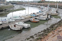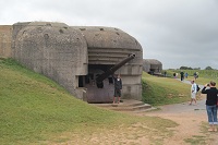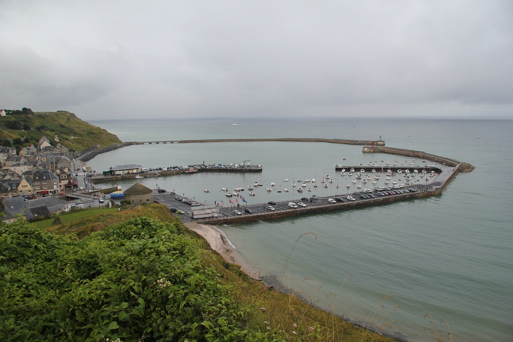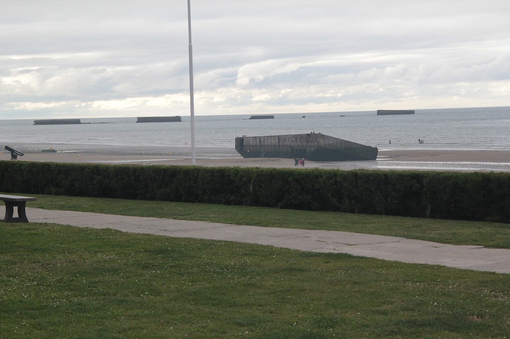 bassin de zee is ingebouwd vonden we er weinig te beleven. In Arromanches was beduidend meer te zien en te beleven. Om te beginnen liggen er het water nog de overblijfselen van de tijdelijk aangelegde haven tijdens de landing. Verder is er een 360 graden bioscoop, die in beeld en geluid je meeneemt tussen nu en de oorlog. De volgende tussenstop was bij de Longues sur Mer. Een oude artillerie batterij van de Duitsers. Verassend goed nog intact, buiten die wat duidelijk een rake klap gekregen heeft. Hierna doorgereden naar Juno Beach en Sword Beach. Vooral bij Juno viel ons weer op dat een haven was "leeggelopen" zo ook hier staan alle bootjes op het droge. Hetgeen ook overal te zien was waren de velden met de rollen voor het vee. Lange uitgestrekte velden met soms wel honderden van die rollen erop. |