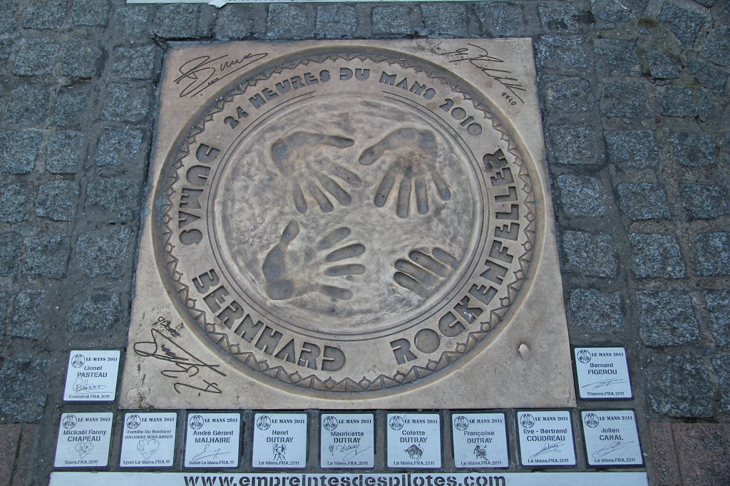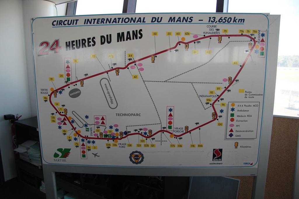omdat het zonnetje erbij schijnt waardoor de weg droog is. We komen dan ook net na de middag al aan op onze bezienswaardigheid van vandaag. Het circuit van Le Mans. Even eerst wat eten alvorens we een kijkje gaan nemen in het Museum. Hierin wordt uitleg gedaan over het circuit van vroeger en nu. De piloten en natuurlijk ook de winnende auto's. Ook interessant waren de maquettes van o.a. de ophanging, diffentieel enz. Daarna zijn we met de minibus een rondrit gaan maken op en rond het circuit met de nodige uitleg en weetjes. Persoonlijk vond ik de controle kamer van de race commissie erg interessant. 30 Life digital camera's houden het circuit in het oog en kunnen ook nog manueel gedraaid of ingezoomd worden. In de stad liggen de winnaars plakkaten rondom een monument. |