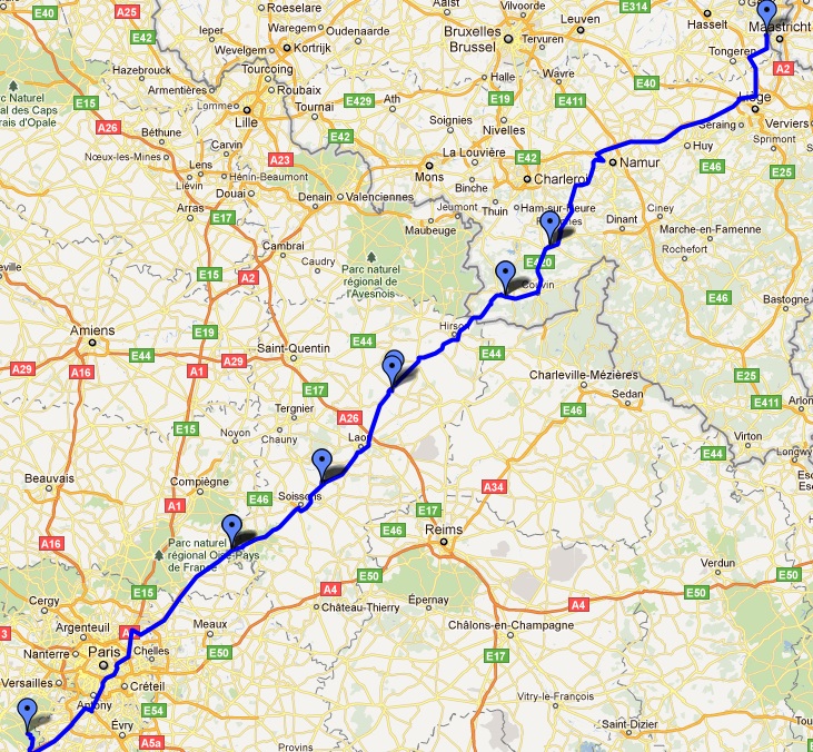 begint via de periferique van parijs en verder via de N2