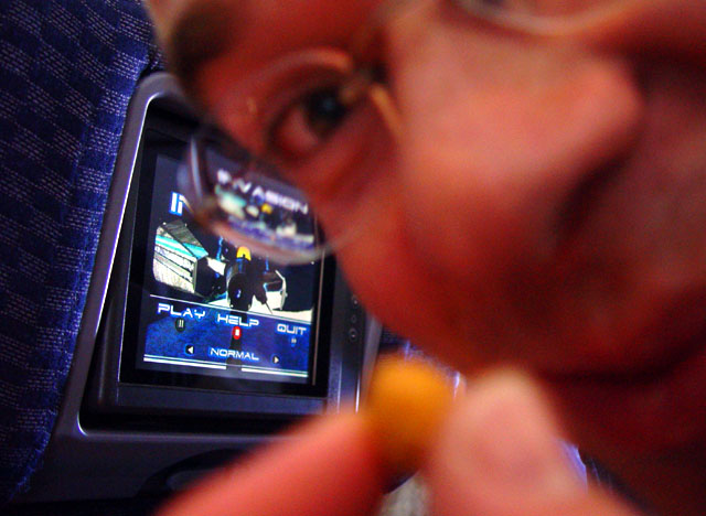 België naar Schiphol in Nederland Na een vlotte heinreis en het verlengen van de tickets konden we zonder problemen met maar 10 minuten vertraging vertrekken. Vertrek : 13:20 Aankomst : 15:40 (lokale tijd) Vluchtcode: CO71B Maatschappij: Continental Airlines Landen op Terminal: C Toestel: Boeing 767-200/200ER Vliegtijd: 8h 20min In het vliegtuig werden we verrast door het moderne aanbod aan snufjes en genoeg beenruimte (zelfs voor Mike). Iedereen had een eigen schermpje waar men kon kiezen uit 15 audio,10 Video- kanalen en een complete spellen collectie die met een gameboy console bediend kon worden. Kathleen had dus delen van de rit geen last van mij :)) In New York aangekomen waren we snel door de douane en