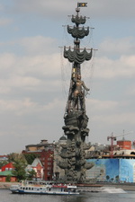 wat kort. We banen ons een weg door de Metro van Moskou (diverse keren overstappen) en komen uiteindelijk in ons Hotel aan. Piekfijn dit keer. :) We leggen ons "even" op bed, en voordat we het weten is het half twaalf. Nu nog naar Kremlin is te laat. Dan doen we maar de planning van de laatste dag. Dat wil zeggen het zuidelijke deel van de Stad. Vandaag maakt Mike zijn eerste navigatiefout en daardoor lopen we bijna van de landkaart af, dju. Nu moeten we 2,5km extra lopen om tot ons geplande punt te komen. Via het Gorkipark komen we langs het monument van Peter de Grote uiteindelijk toch bij de Christus Verlosser Kathedraal (jep, weer een kerk). Apart van deze was dat iemand om 17u een bij torentje inklom en daar het carillon begon te bedienen. Dit betekende tevens de sluiting van de kerk. Als afsluiter van vandaag nemen we de Arbat (winkelstraat) van Moskou mee. We waren er allesinds niet alleen. Veel tekenaars zie je hier hun kunsten uitvoeren. Sommige zijn ECHT goed (niet te zien op de foto). |