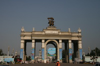 City-tripping. Omdat we gisteren nagenoeg alle bezienswaardigheden in het centrum gezien hebben zijn we vandaag naar het VDNKh getrokken. Het metro systeem van Moskou heeft een monorail en die komt ons handig uit. Vandaar dat we deze nemen. Echter blijkt dat geen moderne te zijn via magnetisme. Gewoon wieltjes die zich over het bochtig parcours wringen. Aangekomen bij het park zien we een gigantische inkom gebouw. Het verdachte is dat we geen inkom hoeven te betalen. Eenmaal binnen blijkt het een soort openlucht pretpark te zijn. De voormalige paviljoens zijn opgekocht door handelaren en verkopen nu daar hun spullen. Kortom een tegenvaller. Wel stond er achteraan een spoetnik Raket. We proberen daarna ons geluk in de op een na hoogste Televisietoren (504meter), maar ook deze kunnen we niet in, en teleurgesteld vertrekken we terug naar ons Hotel. Hier bereiden we ons alvast voor op de komende trip terug naar huis. |