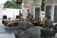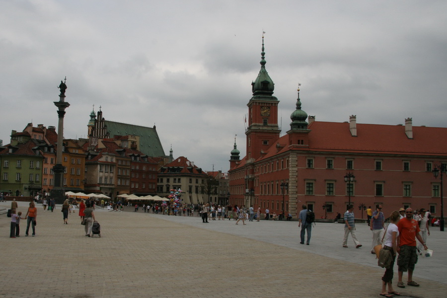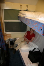 !!.. Een uurtje later word er weer gestopt, even gluren onder het rolgordijn. Mike ziet dat we in een hangaar gereden zijn. Snel aankleden en gaan kijken. Na wat navraag bij 10 tal mensen blijkt dat de treinsporen in Rusland breder zijn als in de rest van Europa. In deze hangaar kunnen 2 rijen van 4 coupe's in en deze worden dan met de hand aangepast. Het bovenstel wordt omhoog gekrikt en een 10 tal mensen per set wielen hameren en sleutelen er 5-10 minuten op los om de klus te klaren. Daarna zakken we weer en kunnen we verder op Europese maat rails. (Lijkt me een aparte job te zijn, de hele dag niets anders doen als wielen breder of smaller maken). Uiteindelijk komen we in Warschau aan en bekijken we de rest van de dag en avond de binnenstad. Ten opzichte van St. Petersburg en Moskou is het een kleine stad met lage gebouwen. Het meeste is trouwens allemaal opnieuw gebouwd, aangezien het tijdens de 2e wereldoorlog voor 90% is platgebombardeerd. Nog net voor middernacht stappen we in onze volgende en tevens laatste nachttrein. Kwa indeling was deze ongeveer hetzelfde, maar dan alles in een hedendaags en verzorgd jasje. Dit zag er weer prima uit. WARSZAWA - BERLIN |