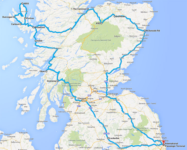 | 07 Jun  | Aankomst met boot in NewCastle, waarna we via Lockerbie doorrijden tot Glasgow | 275 km |