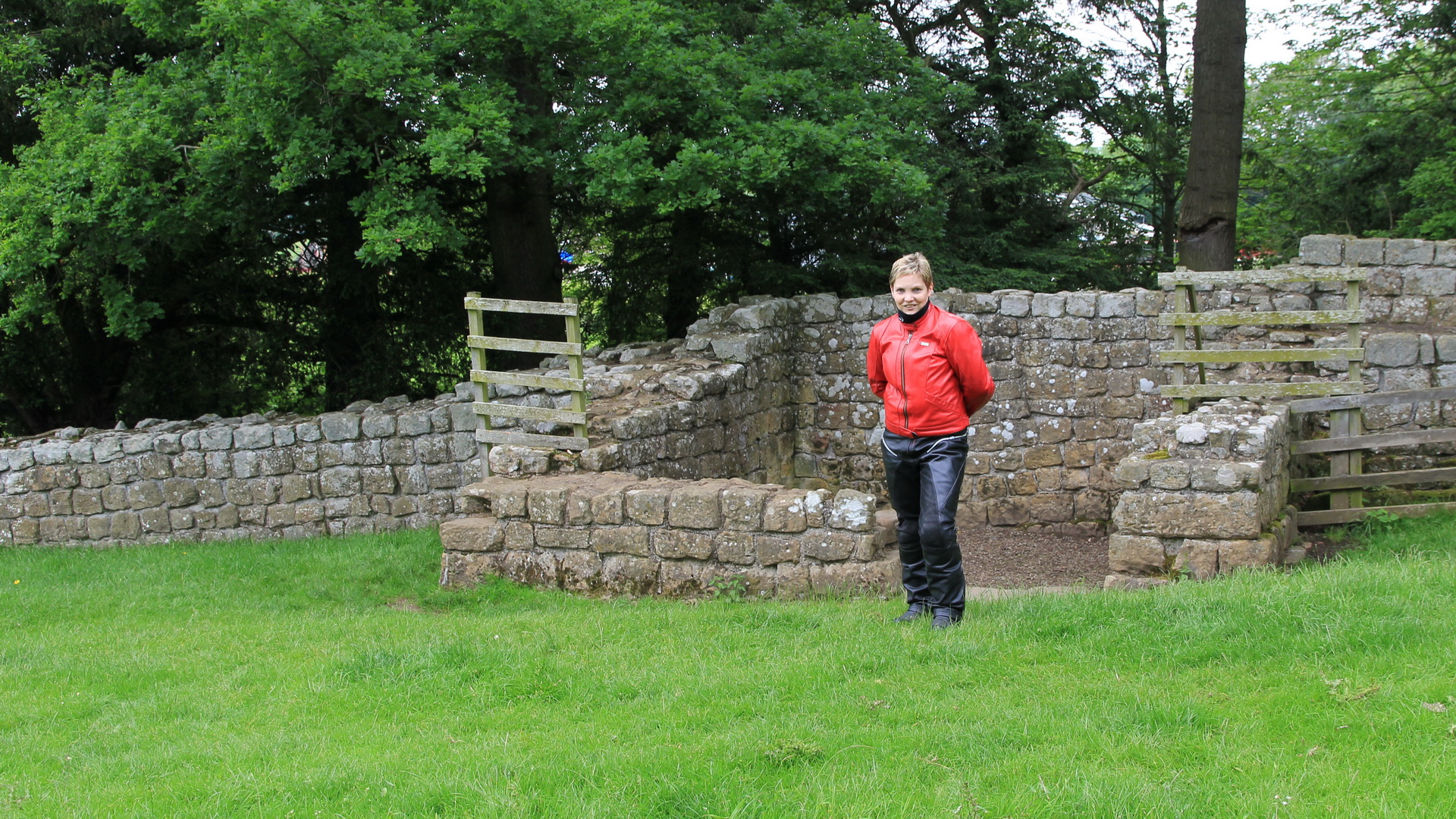 dezelfde als Mike heeft :) Na ongeveer een half uur staan wachten konden we vlot langs de douane. Ook de zon stond (toen nog) aan de hemel. Temperatuur was wel 14 graden ivp 25 gisteren. Net erbuiten heeft Mike zijn eerste cache met succes gevonden. Het was wel effe wennen dat we links moeten rijden maar dat went wel erg snel. Als eerste op de route staat Hadrain's Wall op het programma. Dit is een soort muur dat de Romeinen gebouwd hebben om de noordelijke heidenen tegen te houden. Stukken staan nog redelijk goed, andere delen zijn afgebroken door locals om als bouwmateriaal te dienen. Ondertussen begon het te regenen en besloten we om op te drogen in een museum. Het museum liet goed zien hoe de Romeinen er leefde en welke vestigingen dat ze gebouwd hadden. Na het middageten hadden we besloten om toch maar onze regenkledij aan te trekken. En maar goed want vanaf toen heeft het echt serieus geregend dat er echte polen van water op de wegen stonden. De volgende tussenstop was Lockerbie. De plaats waar een terriostische aanslag op een passagiersvliegtuig gepleegd werd en dit was op 21/12/1988 De vleugel van het toestel kwam in het dorp terecht en er ontstond een enorme brand omdat ze in de vleugel van het toestel brandstof hadden laten ontploffen. De cockpit is 3miles verderop gevonden. Er zijn meer als 250 slachtoffers gevallen. En voor die mensen werd een standbeeld opgericht. Omdat het zo regende besloten we op de autostrade te
