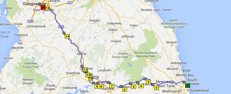 nemen richting Glasgow. We waren blij dat we er veilig waren