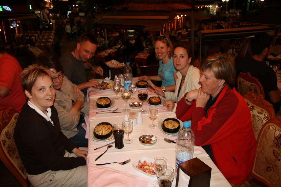 moeten vertrekken. Dankzij een tip van Peter (thnx) hebben we een dag op voorhand al via Internet onze zitplaatsen gereserveerd. 1e Vlucht: Amsterdag - Wenen OS372 10:35 - 12:30 2e Vlucht: Wenen - Istanbul OS821 13:15 - 16:30 Vluchten verliepen zonder problemen, ook de bagage kwam netjes op de band. Na het halen van een visum voor 3 maanden kon de vakantie dus beginnen. Ons hotel bleek al vol te zitten dus we moesten uitwijken naar een ander hotel. Hier hadden ze in eerste instantie te weinig single rooms (ons gezelschap bestaat uit 9 personen, waarvan 2 koppels), maar na wat gerommel en gebel bleken er toch genoeg te zijn. Daarna hebben we, met het grootste gedeelte, gezamelijk ons avondeten genuttigd. |