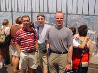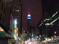 | Het eerste dat we zagen na het uitpakken van de koffers (14e) was het "Empire State Building" by Night. Daarna liepen we richting MidTown, op Broadway is het inderdaad 's nachts even druk als overdag. VOL DUS! Onze NY gids (ANWB boekje) bracht ons naar het Marriott Marquis Hotel. Hier zou op de 48ste verdieping een restaurant zijn met de naam "The View". We kunnen inderdaad bevestigen dat je vanaf hier een prachtig overzicht hebt over NY. In een uur tijd draait dit restaurant om zijn eigen as (360 graden) en zie je dus heel New York voorbij trekken. Het eten is er kolossaal, net als de prijs !! De 15e stond MidTown overdag op het programma met gebouwen als Rockefeller, Trump Tower, St. Thomas Church en het wel zeer bekende Central Park. Op zondag altijd goed voor veel volk en veel spectakel. Roller Blades, Bikers, Joggers en wandelaars. Tenslotte stond het "American Museum of Natural History" op de planning. Een skytrip door de universe in een Imax-theater was een van de bezienswaardigheden. De 16e begon met een metro rit naar Downtown. Vandaag zou de dag worden van Skylines en Statue of Liberty. Dat is het ook geworden. Als eerste hebben we een boottocht naar het Staten Island gemaakt. Een gratis vaart om panorama foto's te maken van o.a. de Skyline. Daarna de boot naar het Vrijheidsbeeld. Hiervoor moesten we al redelijk lang in de rij staan. Maar aangekomen op het eiland mochten we nog eens 50 min aanschuiven om enkel in de voet van het vrijheidsbeeld te mogen, een tegenvaller voor deze dag. Ook het musea stelde niet zo veel voor. Daarentegen is het gras om het beeld heerlijk om bij te komen.! De terugweg ging via de Brooklyn- en de Manhattan Bridge. Vandaar dwars door China Town, hier goed gegeten met echte stokjes. Duurde daarom iets langer maar we hebben allemaal onze buik goed kunnen vullen. Onze puf was daarna zo laag dat we met de metro terug naar huis zijn gegaan. Onze derde dag (17e) in NY begon reeds zeer vroeg voor ons begrip van vakantie, 07:00 uur opstaan om bij de "NY Stock Exchange" zeg maar de Damrak van Amsterdam, naar binnen te kunnen. Wat vergaten we echter mee te nemen, de kaart van NY! Dat leverde ons een voettocht op van ca. 4km omdat we te vroeg uit de metro stapten. De beurs was net geopend toen we binnen kwamen en een blik mochten werpen op de plaats waar het "grote geld" wordt verdient. Daarna bleven we "Downtown" voor een bezoek aan het "World Trade Center". De twee grote skyscappers staan dicht bij elkaar en bieden een mooie blik vanaf de 107e etage. De CN Tower in Canada overtreft deze toch net. Omdat zich onder ons een luchtmachter bevindt, besloten we NY ook een aanblik vanuit de lucht te geven. Het vliegen met de heli was heel mooi en liet ons in korte tijd bijna heel "Manhatten" zien, van zuid tot noord en terug. Hierbij kwamen we ook weer langs tante Truus, dus die hebben we nu van veraf, kortbij, laag en hoog gezien! Ook de "SkyLine" geeft een aparte blik als hij van boven wordt gezien. De 18e zijn we om 17:45 vertrokken in een Yellow cab richting Newark Airport. Omdat we midden in NY rush hour zaten, deden we er 45 min over om 6 blocks verder te komen. Nadat we eindelijk uit het overvolle NY ontsnapt waren via de Holland tunnel, kwamen we mooi op tijd (19h) aan om onze nieuwe auto op te halen. Hiermee vertrokken we 's avonds richting Atlantic City. |