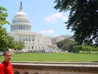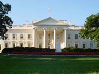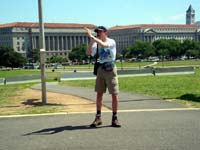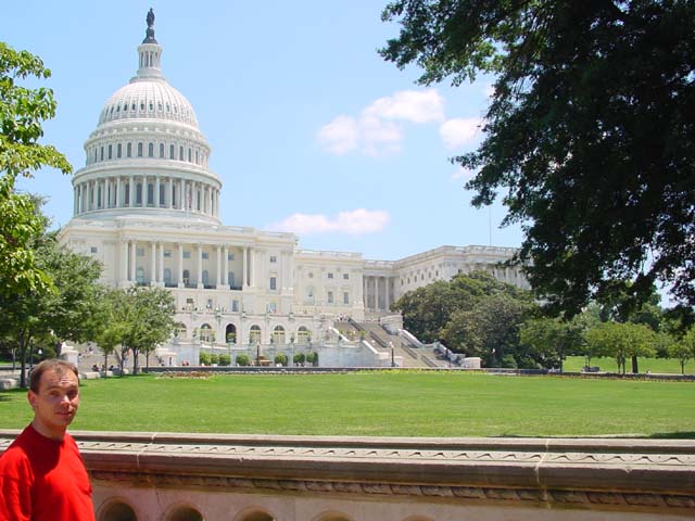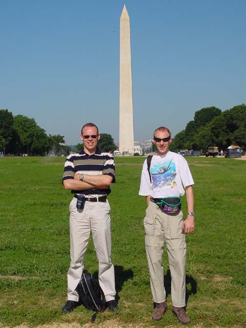 | Na een korte nachtrust, moest de eerste (Mike) er al om 6:00 uit. Vertrokken we vol goede moed richting het "White House" van der Georgie. Hier stond ons echter een teleurstelling te wachten. Ze geven maar een beperkt aantal tickets per dag uit. We hadden al om 6:00 in de rij moeten staan om in het Witte Huis te mogen. Oftewel helemaal voor niets zo vroeg op bed. SHIT ! ! Hierdoor moest onze Washington planning snel omgebouwd worden. Eerst maar om het Witte Huis lopen om het tenminste van buiten in real life te kunnen zien. Daarna in het Visitor Center wel een film bekeken over alle kleuren kamers (Blue, Red, Green, Yellow) en natuurlijk het Office van "der Bush". De trektocht ging verder langs het "Washington Monument" en daarna naar het "Smithsonian Institutian". Een gebouw dat uitziet als een Castle maar de inrichting van een galery had. In een lokale print en copier shop nog eens onze website kunnen updaten (en dit zelfs gratis). Ondertussen is het middag en was het moeilijk uit te houden in de zon. Temperaturen boven de 30 en geen zuchtje wind ! ! Toch hebben we in de namiddag nog het Capitool en het "Holocast Memorial Museum" bekeken. Om daarna snel terug te gaan naar het hotel waar het zwembad ons weer hartelijk aanlachte. De volgende dag (23/7) dus lekker uitslapen. Iemand zou toch de wekker op 8:00 zetten??? In ieder geval zo tegen 9:30 zijn we eruit geschopt door de schoonmaakster. Nadat we ons allemaal aangekleed hadden, zijn we op weg gegaan om de laatste bezienswaardigheden van Washington te bekijken. Nadat we een aantal rondjes op en neer hebben gereden, op zoek naar een parkeerplaats, hebben we maar tegenover het 'White House' geparkeerd. Daar waren ze zo vriendelijk dat we ook nog eens gratis mochten parken! We waren nauwelijks uitgestapt en Roland was gelijk weer bezig om alles op film vast te leggen. Dat zal hem weer een aantal extra bandjes gaan kosten... We hadden nog een aantal Memorial plaatsen op het lijstje staan en de Lincoln Memerial was de eerste die we bezochten. Het weer was weer lekker warm, boven de 30 graden. Hij zit daar prins heerlijk op zijn stoeltje over het water te kijken. Daarna zijn we naar de Arlington Memorial gegaan, waar allerlei bekende Amerikaanse begraafplaatsen zijn. Hier ligt onder andere John F. Kennedy en zijn vrouw. Ook het herdenkkingsmonument van de crew van de Space Shuttle Challenger is hier te vinden. Zeer indrukwekkend al die graven en stenen! |