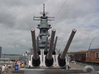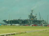 | Vandaag stond in het teken van de Amerikaanse Navy. We bezochten de grootste basis van de Amerikaanse Marine, hier zijn 54.000 militairen gestationeerd (dit is 3,5x de complete Nederlandse Luchtmacht). We hadden geluk want er lagen maar liefst twee vliegdekschepen in de haven nl. USS Nimitz en de USS Theodore Roosevelt, diverse ondersteunende schepen en 3 onderzeeboten. Omdat de basis een rondleiding had zijn we overal met een bus langs gereden. Er stonden diverse vliegtuigen opgesteld die ook op de vliegdekschepen terug te vinden zijn als ze operationeel varen. Als laatste stond op het programma de museumboot USS Wisconsin die hier voor anker ligt. Deze schuit heeft als laatste operationele vaart nog in de Golfoorlog (1990-91) rondgevaren en de Irakeese kust met haar 16" gunns (9 stuks, 6 voor 3 achter) bestookt. We kregen tegen de middag weer honger en dit leidde ons weer naar de welbekende oranje broekjes toke, den vaderland getrouwe :) Zoals vaker deze vakantie, alles wat gratis is maken we als Hollies gebruik van en zijn we naar Kinko's gegaan om onze web-site weer te updaten en onze mail te checken. |