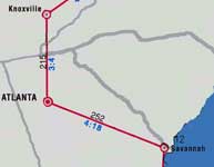 Buiten het afleggen van weer eens wat "miles" en het trekken naar zuiderlijke staten valt er weinig nuttigs te vertellen. We zijn wel door Atlanta heen gereden, maar zoals aan de foto te zien is, was het er zeer mistig. Vandaar dat we maar wat algemene info geven.